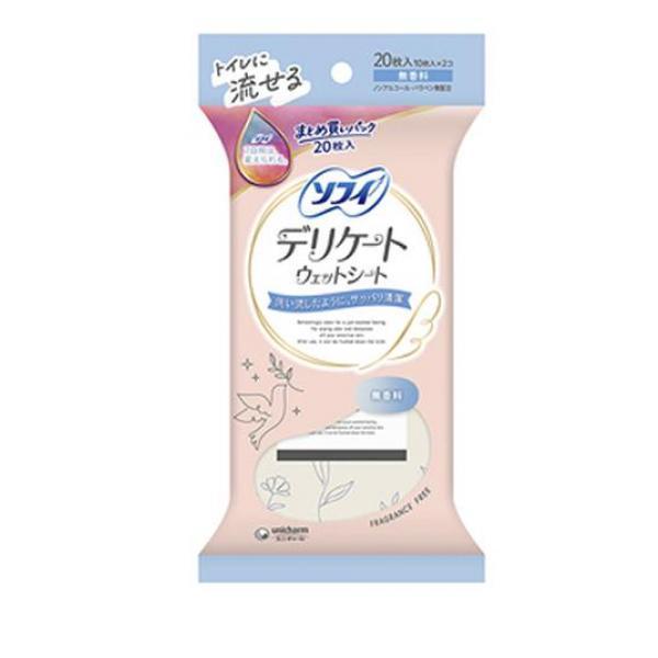 Sofy Delicate Wet Sheets, Unscented, 20 sheets (10 sheets x 2 packs)