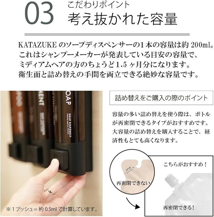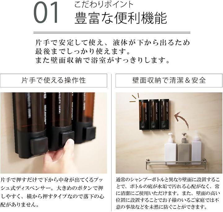 * 注意事項 * トリートメントやリンスインシャンプー等粘度の高いものを使用する際、中身が出てきづらい場合は、数回プッシュしてください。