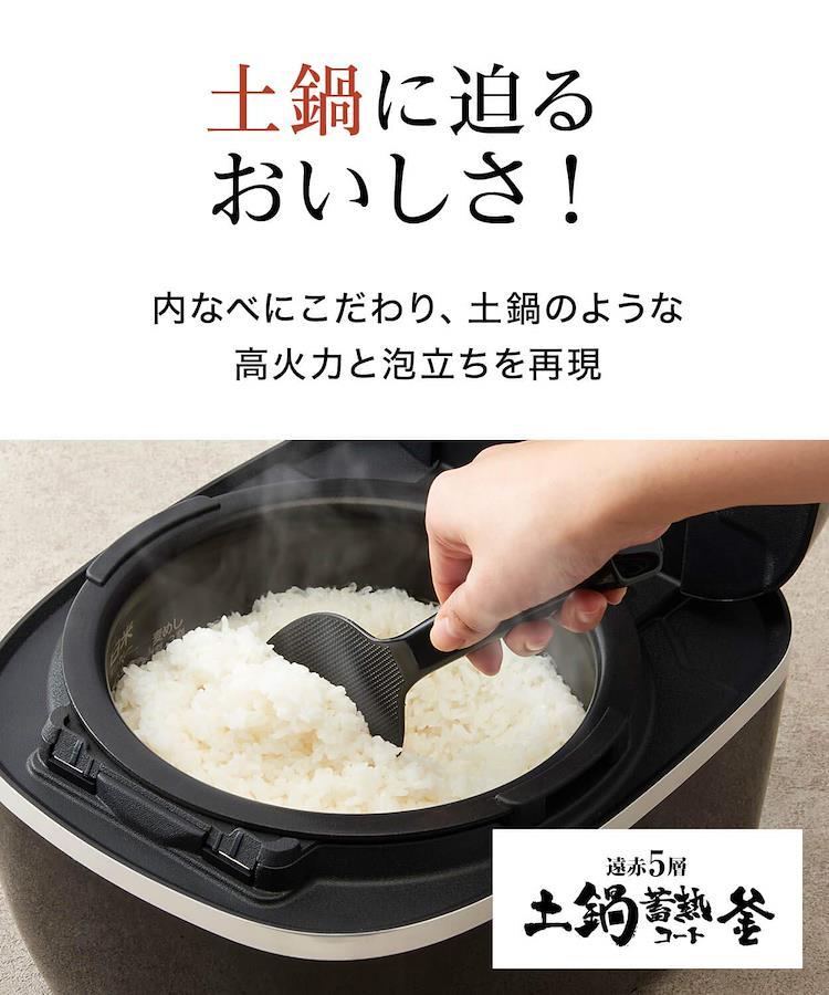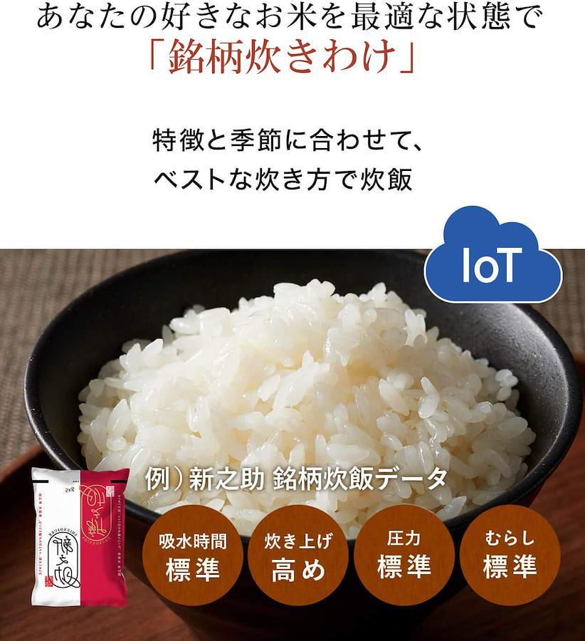 タイガー魔法瓶(TIGER) 炊飯器 IoT機能搭載 2021年 5.5合 圧力IH式 土鍋神話 銘柄炊飯 炊きたて クラッシックブラック JPA-X100ブランド タイガー魔法瓶(TIGER)容量 1 L商品の寸法 25.2D x 30.2W x 21.1H cm色 クラッシクブラック特徴 炊き分け土鍋神話シリーズのIoT機能搭載モデル 炊飯容量:5.5合炊き(最大炊飯容量:1.0L) / 加熱方式:可変W圧力IH商品サイズ本体:(約)幅25.2×奥行30.2×高さ21.1cm 商品重量 : 5.4kg電源コード:(約)1.0m / 1回当たりの炊飯時消費電力Wh:176 / 1時間当たりの保温時消費電力量Wh:17.8付属品:計量カップ、自立式しゃもじ、麦専用計量カップ(1割/3割)、内なべコーティング3年保証つき土鍋コーティングを施した遠赤5層の厚釜で蓄熱性をアップし、ごはんのおいしさを引き出します。「つや艶内ふた」で保温時には水分の膜を張って、ごはんをしっとり保温します。「少量高速」メニューで1合が約17分※ で炊飯できます 。料理によってお