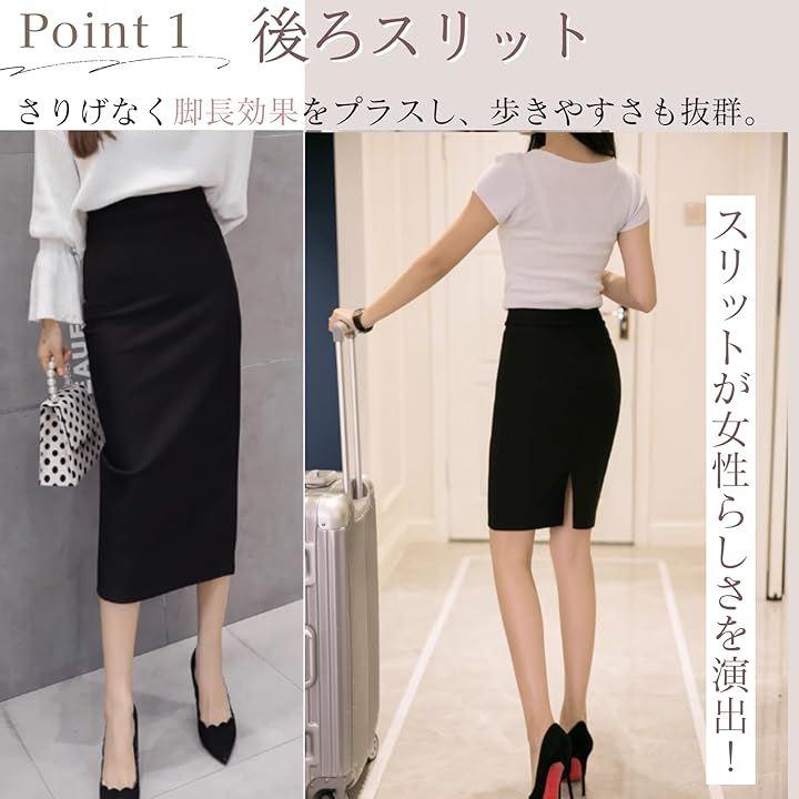 ポイント1:後ろスリットがさりげなく脚長効果をプラスし、歩きやすさも抜群。