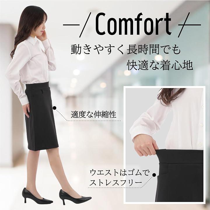 通勤や仕事用としてもぴったりなこのスカートは、きちんと感を演出しながらも程よく体にフィットし快適な着心地です。