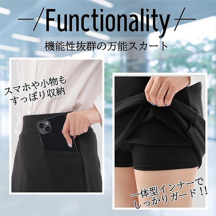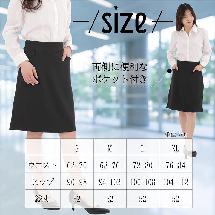 「カラー」ブラック 「サイズ」スカート丈 52cm / S:ウエスト62-70 ヒップ90-98 / M:ウエスト68-76 ヒップ94-102 / L:ウエスト72-80 ヒップ100-108 / XL:ウエスト76-84ヒップ104-112