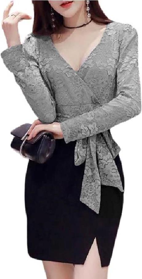 レーストップスとタイトスカートとの切り返しで1枚でお洒落でかわいいアイテムです。