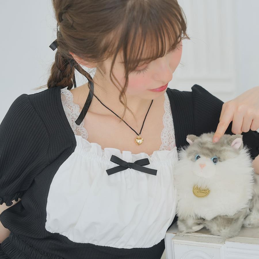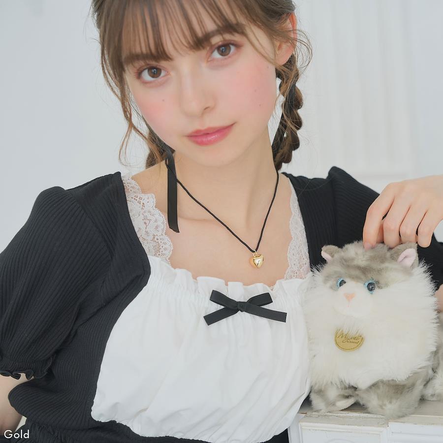 シルバーとゴールドのハートチャームで、首回りは丸紐のようになっています。