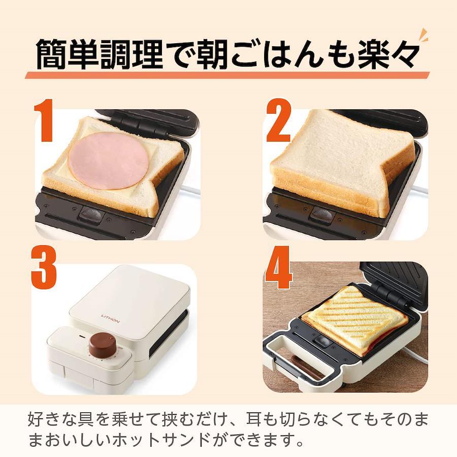 3営業日以内に発送≪新品未開封品≫:■食材を挟んでタイマーをセット!耳までカリッと美味しいホットサンド■便利なタイマー機能付き:セットした時間になると「チン!」と音が鳴ってお知らせします。■フッ素樹脂加工&着脱式プレート:耳付き食パンを使えるので、耳を切り落とす手間もありません。■簡単に作れるレシピブック付き。:フッ素樹脂加工で焦げ付きにくくなっています。油をひかずに調理できるのでノンオイルでヘルシー。 着脱式プレートなので、水洗いできてお手入れ簡単です。