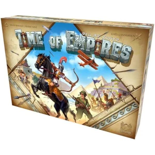 ホビージャパン タイム・オブ・エンパイア 日本語版 (2-4人用 60分 12才以上向け) ボードゲーム 『タイム・オブ・エンパイア』はリアルタイムワーカープレイスメントの文明発展ゲームです。『タイム・オブ・エンパイア』ではプレイヤーはちょうど3時代に渡ってプレイします。各時代は3つのフェイズで構成されています。メインとなるアクションフェイズはリアルタイムでプレイされ、その行動はワーカーである砂時計で管理し、とても忙しいものとなります。選択できるアクションは9種類で、リソースの獲得や建設、「冶金」や「宇宙征服」などの技術の獲得や、始皇帝やナポレオンといったリーダーとの邂逅など、多岐にわたります。9分間のこのフェイズを終えると得点計算フェイズとなり、この時代のプレイヤーの行動を得点化します。これを3時代分プレイし、その合計が最も高いプレイヤーが勝利します。プレイ人数:2-4人プレイ時間:60分対象年齢:12歳以上ゲームデザイン:David Simiand and Pierre Voyeイラスト:Ga?l Lannurien[セット内容]共通ボード4枚プレイヤーボード4枚指導者効果タイル4枚地形タイル12枚砂時計8個砂時計キャップ16個人口トークン80個建物駒80個資源駒48個カード118枚ルールブック1冊