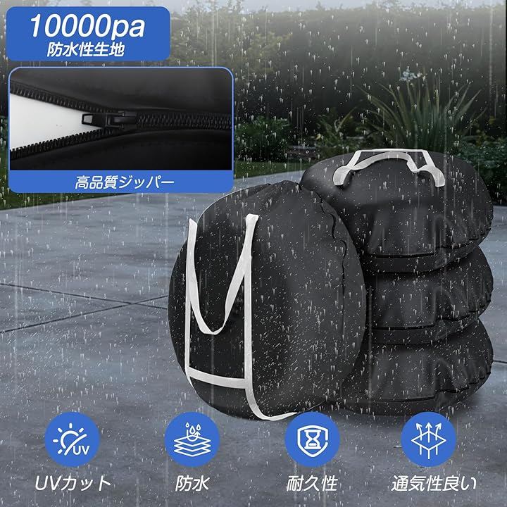 「全天候対応・多機能タイヤカバー」あなたのタイヤを守る保護アイテム。屋外や屋内での保管に適しており、紫外線・雨水・雪・ほこり等からタイヤをしっかり守ります。