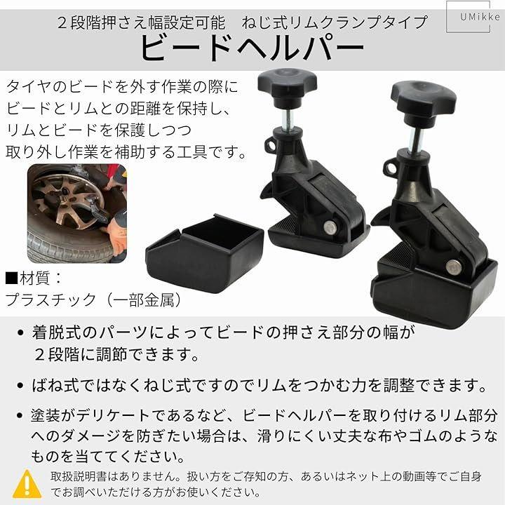 タイヤのビードを外す作業の際に、ビードとリムとの距離を保持し、リムとビードを保護しつつ、取り外し作業を補助する工具です。