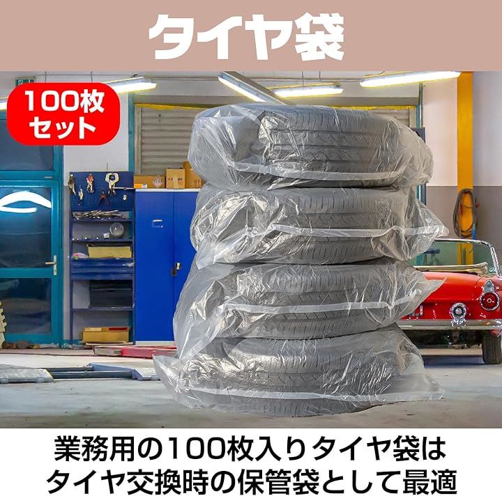 「タイヤ 袋 100枚入」 業務用の100枚入りタイヤ袋は、タイヤ交換時の保管袋として最適。