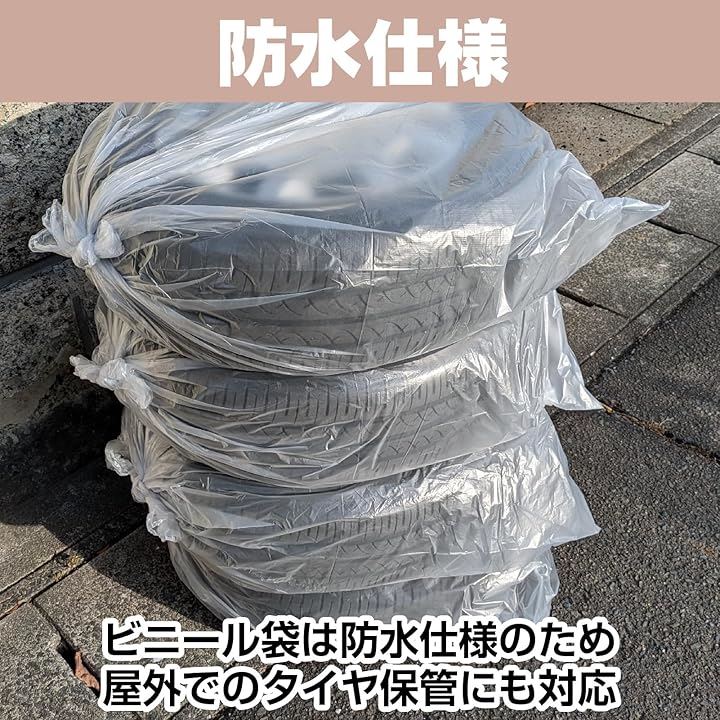 「タイヤカバー 屋外」 ビニール袋は防水仕様のため屋外でのタイヤ保管にも対応。
