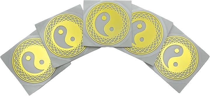 Taomark Geometric Pattern Lunar Tai Chi Diagram Gold Metal Decal Sticker 3cm 5 Sheets E881