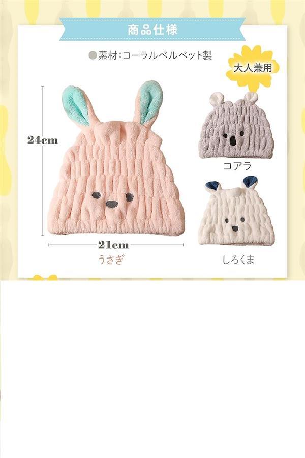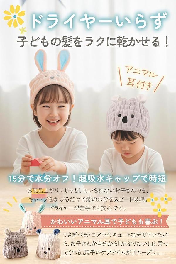 「キュートなアニマルデザイン」うさぎ・くま・こあらの動物耳つきデザインで、子どもも大喜び。