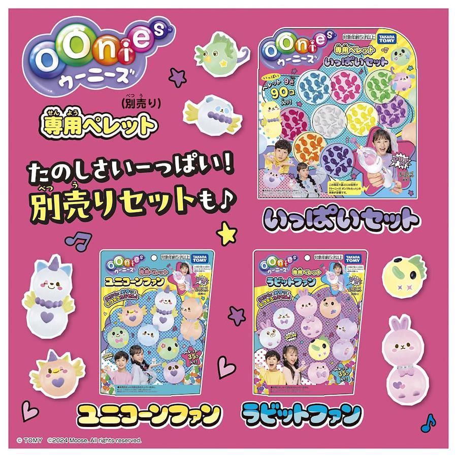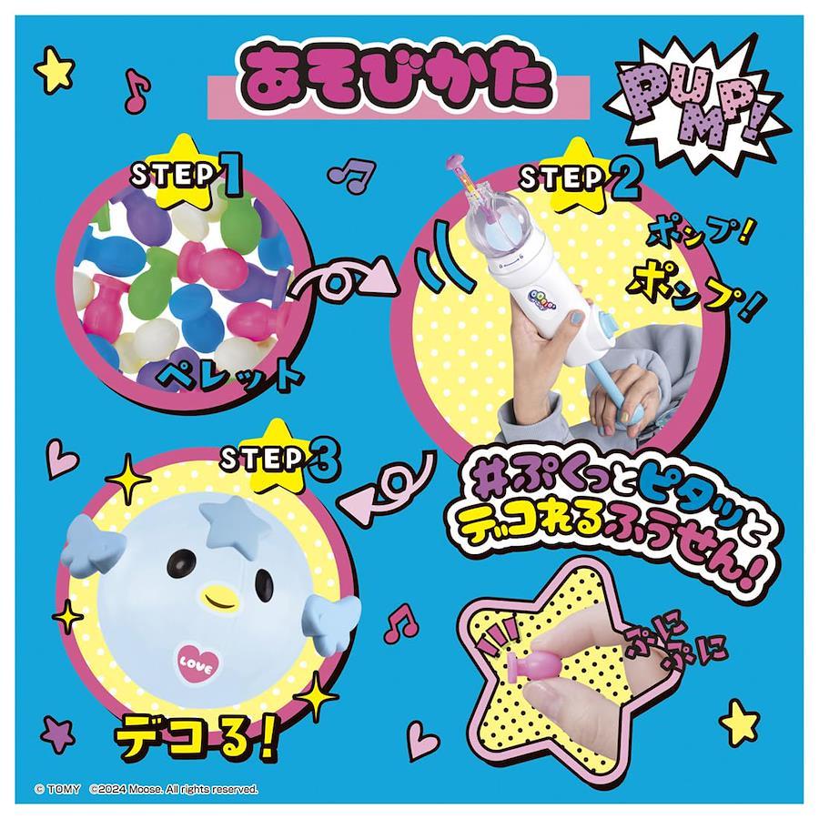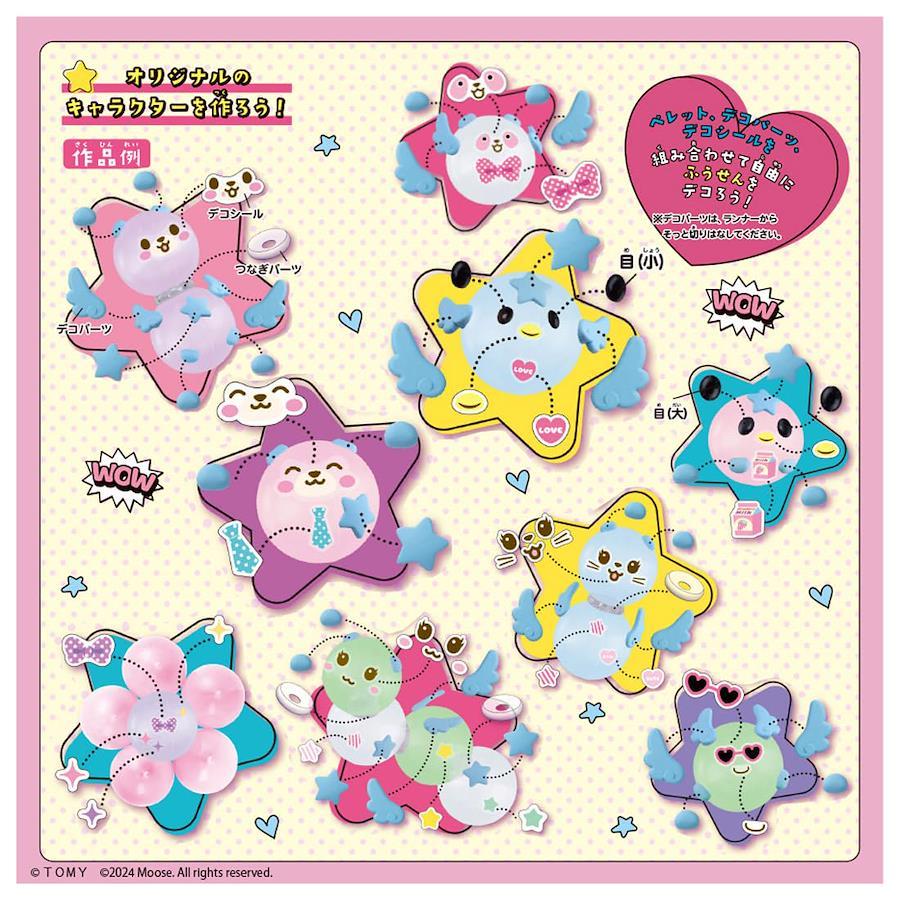 #ぷくっとピタッとデコれるふうせん!大人気!ぷにぷにふうせんが作れる「ウーニーズ」が…今度はポンプ型になって新登場!#ぷくっとピタッとデコれるふうせん!「ウーニーズ」。ふうせん同士をくっつけたり、デコパーツやデコシールで自由にデコって自分だけのマスコットを作ろう!ぷにぷにな感触のカラフルな専用ペレットが…くっつくふうせんになる!?(1)ペレットを本体のドームにセット!(2)ダイヤルを回すと、ペレットに針が挿入されるよ!(3)ポンプを押すと空気が注入され、ペレットがぷくっとふうせんのようにふくらむよ!ふくらんだふうせんは、ふうせん同士をくっつけたり、付属のデコシールやぷにぷに感触のデコパーツでデコって、いろいろなマスコットを作ってみよう!ふうせんは弾力で空気穴が閉じ、空気が漏れださない仕組みになっています。ふうせんやデコパーツは、簡単にくっつけたり取り外すことができます。【セット内容】本体(1),ペレット 白・ピンク・紫・青・緑(5色×各7)(35),デコパーツ(18),目のデコパーツ(大)(4),目のデコパーツ(小)(4),つなぎパーツ(6),ディスプレイパーツ(6),デコシールシート(2),取り扱い説明書(1), (C) TOMY (C)2024 Moose. All rights reserved. 電池は使用しません。