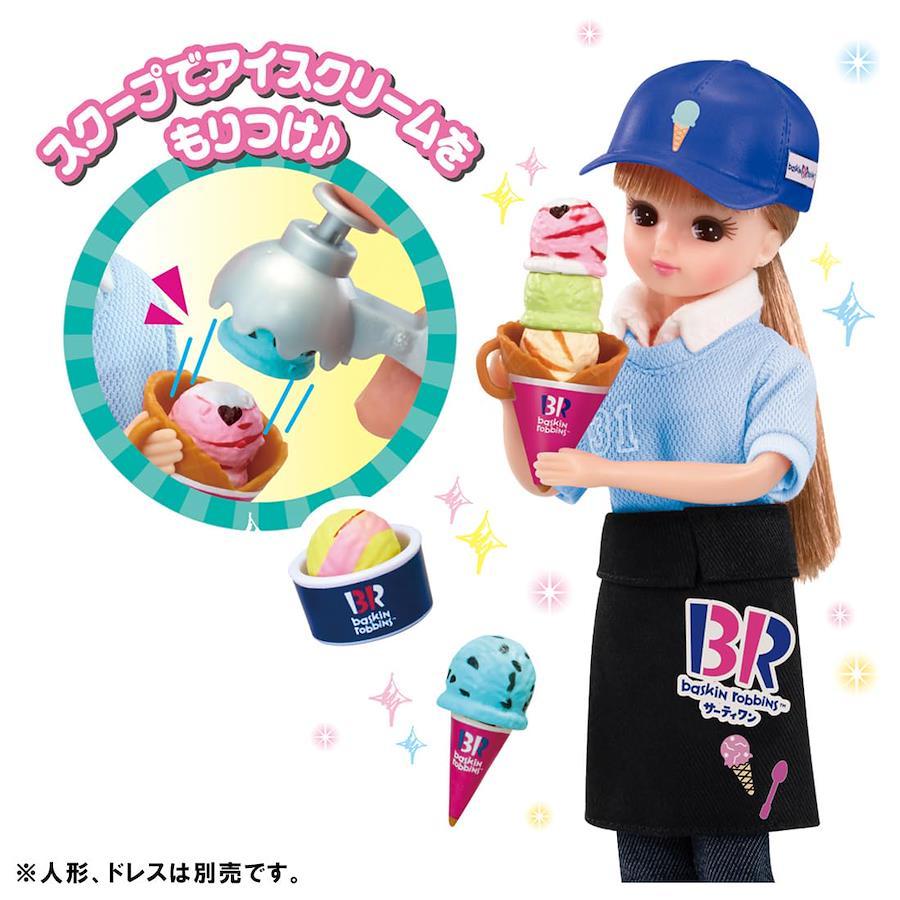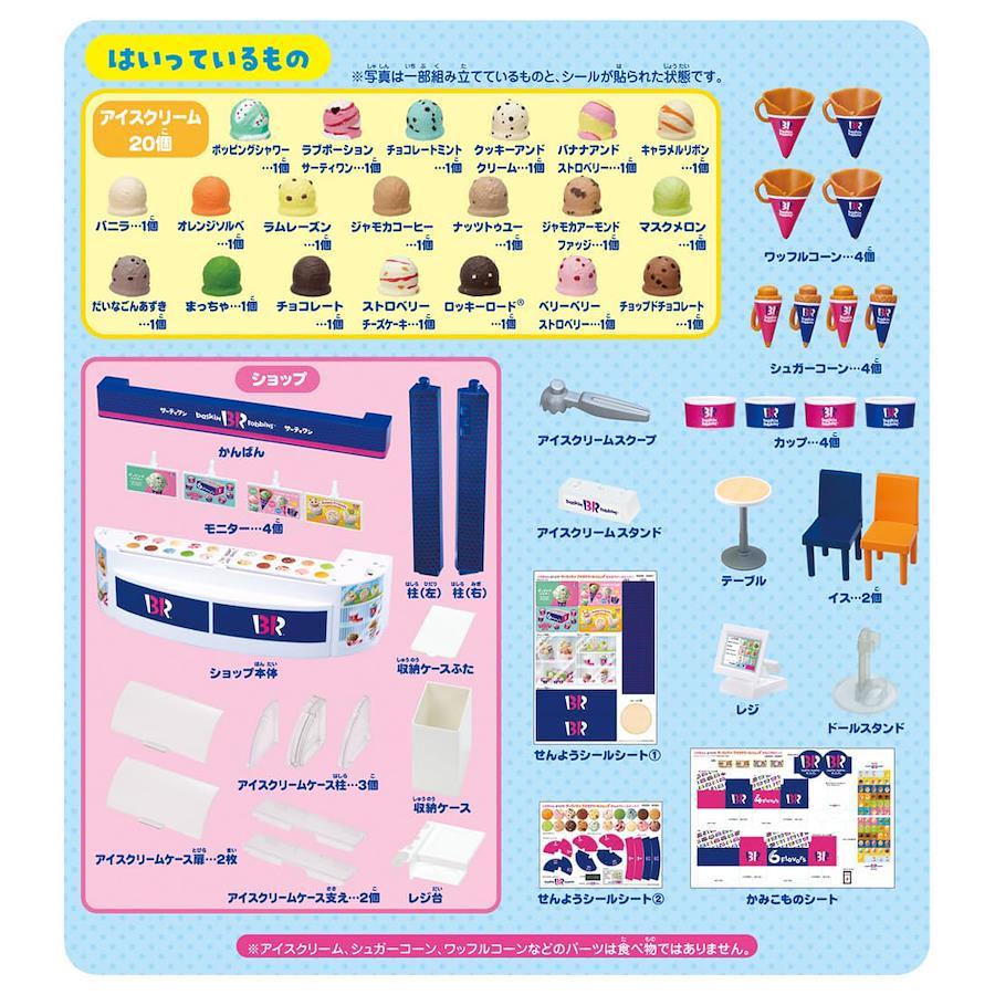 スクープでアイスクリームをすくってコーンやカップに盛りつけ!アイスがいっぱい♪リカちゃんサイズのサーティワン アイスクリームショップです。