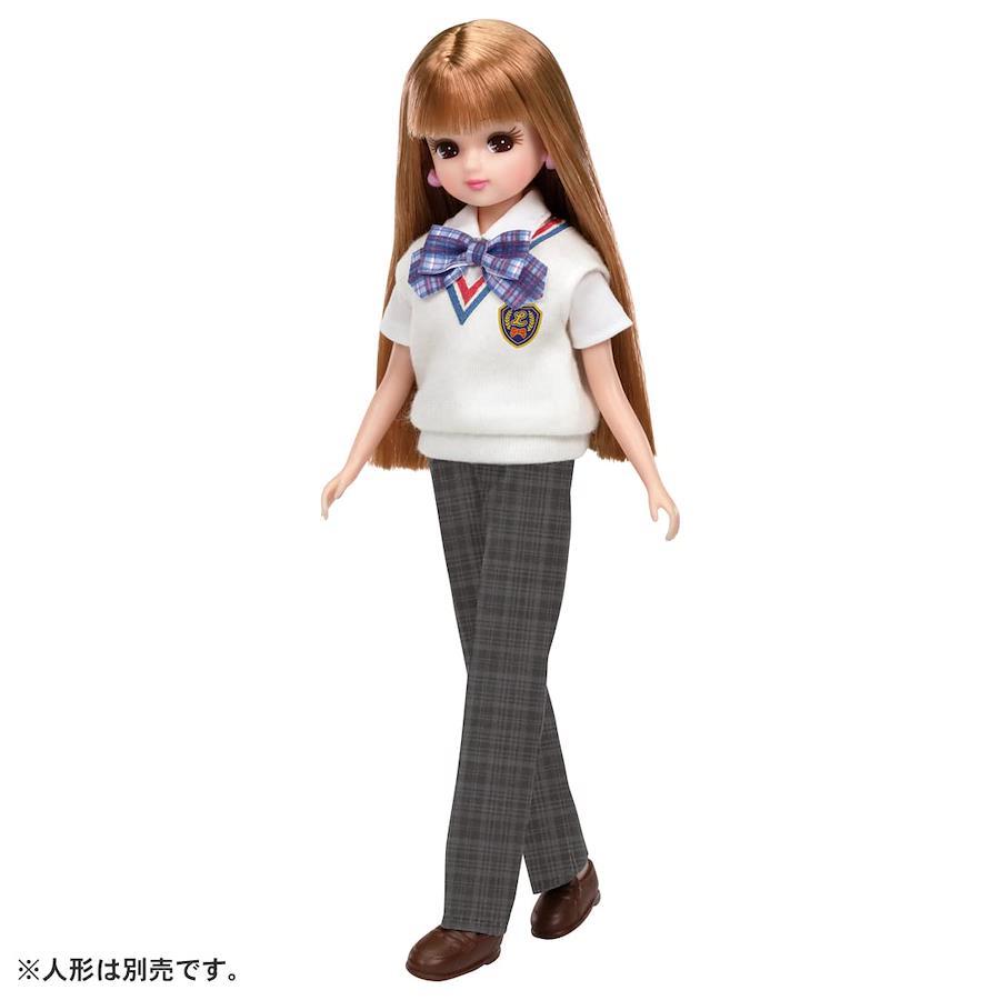 リカちゃんのおしゃれなせいふくセット。リアルなせいふくコーデが楽しめるドレスセットです。チェックのスラックスが付いているので、せいふくのパンツスタイルも楽しめます。スクールバッグ、ソックス、クツ付き。【セット内容】せいふくトップス(1),スカート(1),スラックス(1),スクールバッグ(1),ソックス(1),クツ(1),※人形は別売です。, 電池は使用しません。 (c) TOMY パッケージ重量: 0.1 kg 素材: ポリエステル