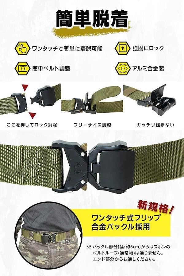 ・「特徴(2)」サバゲーでは ダンプポーチ マガジンポーチ ホルスター タクティカルポーチ、作業時やDIYでは 腰袋 道具入れ などを装着する際にも利便性を発揮できる耐久性に優れたワンタッチバックルのタクティカルベルトです。