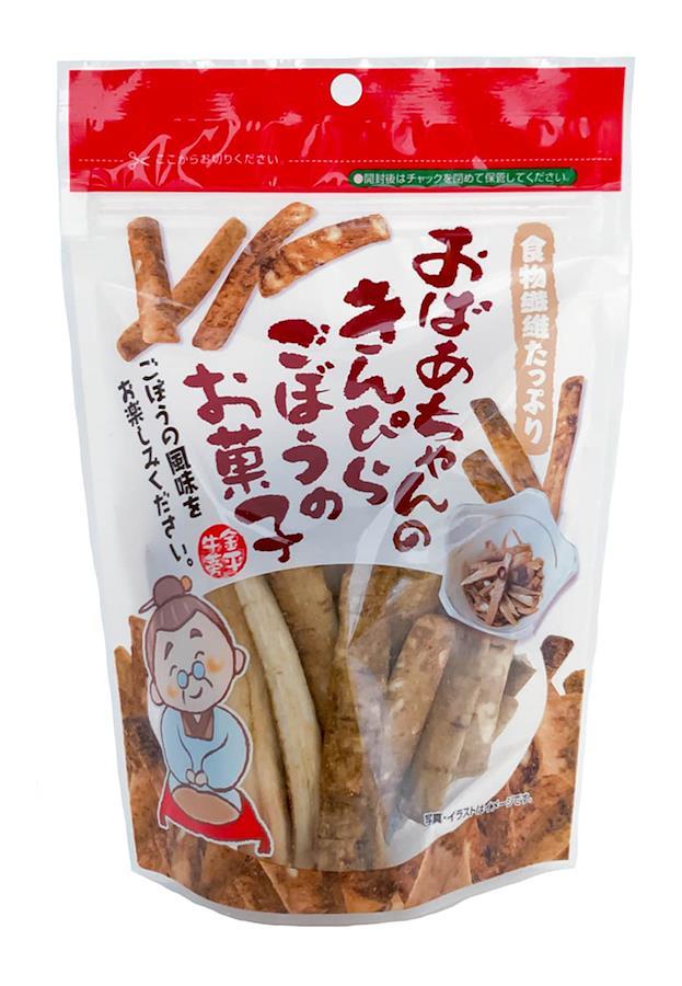 ごぼうの形をそのまま生かした、きんぴらごぼう風のピリ辛で甘辛味のお菓子です。総菜のきんぴらごぼうをお菓子として再現したユニークで美味しいお菓子。減圧フライ製法(バキュームフライ製法)で、ごぼうを揚げているのでごぼう本来の味や風味や色合いをあまり損なわないよう仕上げております。甘辛い味わいがクセになる味わいで、おやつとしてやお酒のおつまみとしても良く合います。