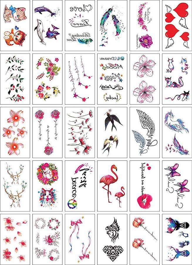 ・こちらのタトゥーシールは、猫 イルカ ハート フラミンゴ、リース 天使 燕 ペガサスがメインで入っています。