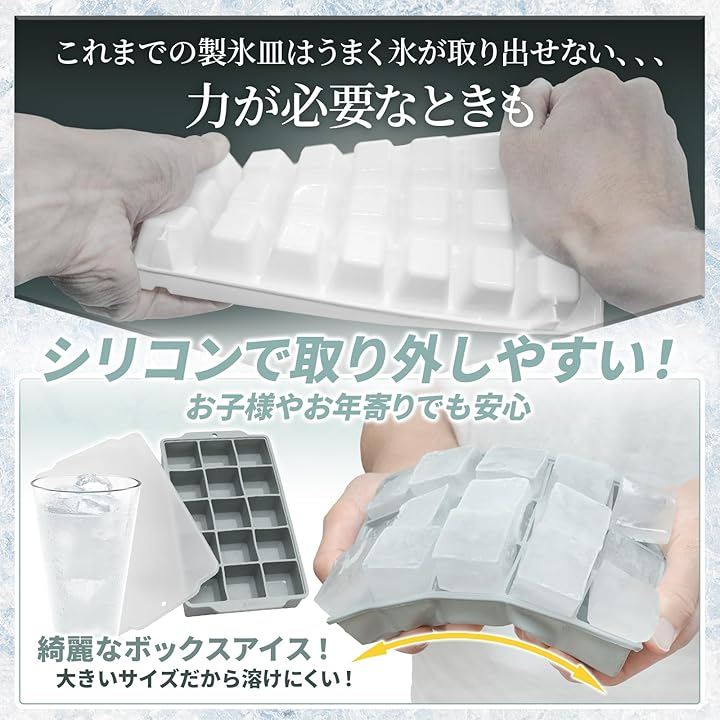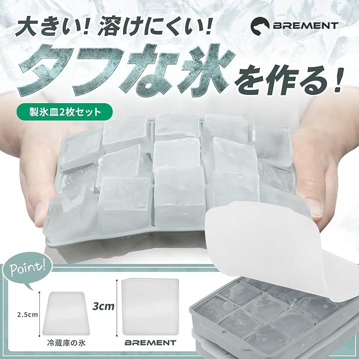 「大きいから溶けにくい。」冷蔵庫で作る通常の氷よりも大きく、四角いタフな氷を作ることができます。