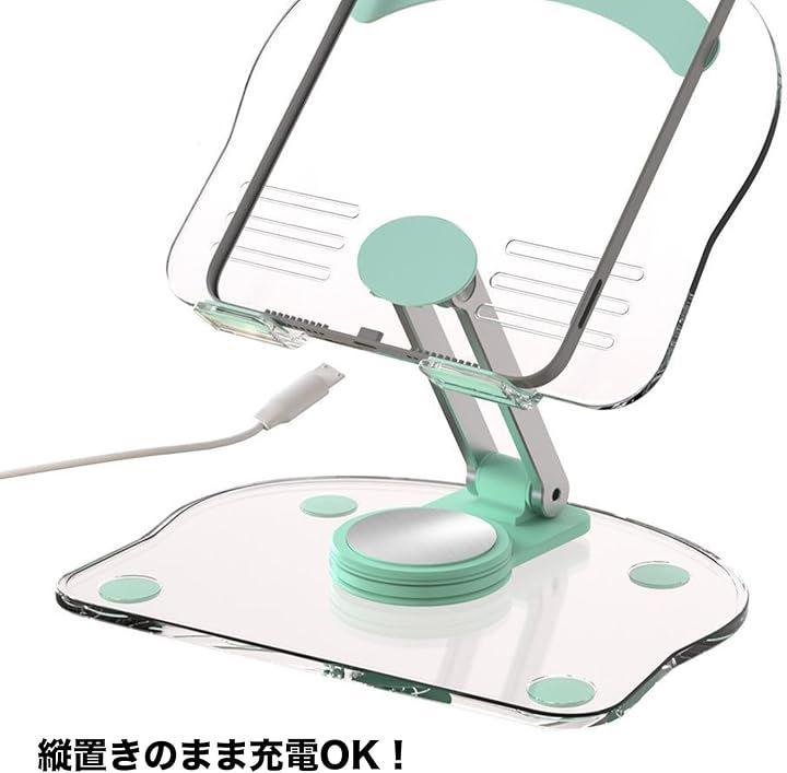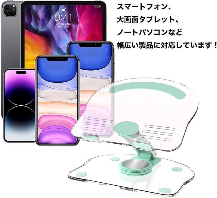安定感のある透明ベースに滑り止めを搭載し、スマホやタブレット、ノートPCまで幅広く対応。