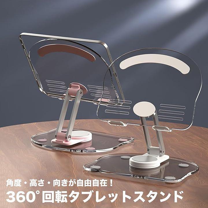 「商品説明」角度・高さ・向きを自由に調整できる360°回転タブレットスタンド。