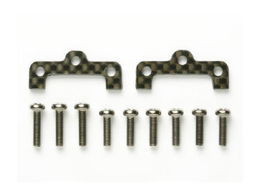 3営業日以内に発送≪新品未開封品≫ダンパーのピボットとなるロワサスアームにあわせて、ダンパーを最適な位置にセッティングするためのダンパーステー用マウントスペーサーです。軽く強度の高い2mm厚のカーボン製。ダンパーステーのたわみを最小限に抑えて、ダンパーの作動をスムーズにします。キット標準のダンパーステーにはもちろん、TA05カーボンダンパーステーにも使えます。TA05シャーシに適応。
