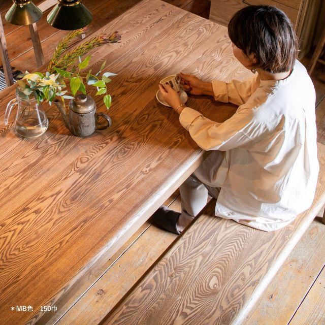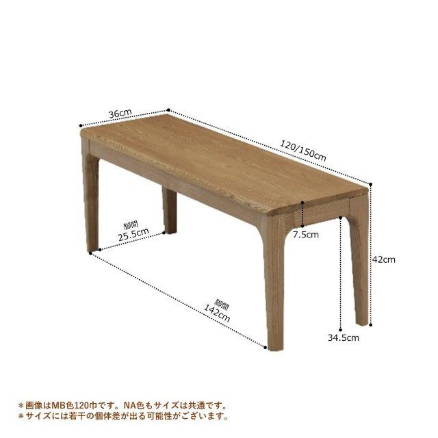 タモ無垢材の個性豊かな木目が楽しめるダイニングベンチ2サイズ〈幅120cm/幅150cm〉