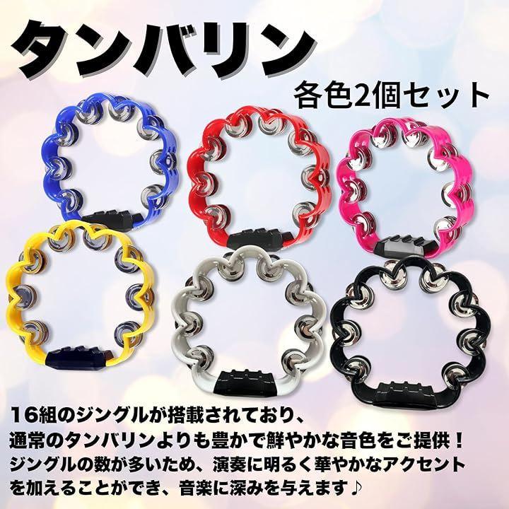 「商品詳細」タンバリンx2個セット サイズ:横21.5cm x 縦21.5cm x 幅4.5cm カラー:ブラック / ホワイト / レッド / ブルー / イエロー / ピンク このタンバリンは、さまざまなカラーからお選びいただけ、セットで購入することで、さらに便利にお使いいただけます。