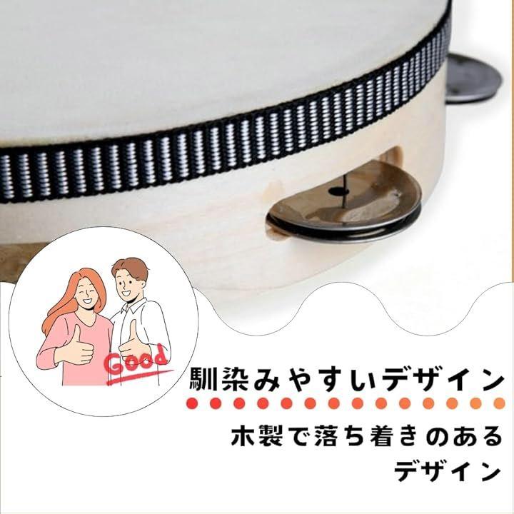 「商品内容」タンバリン 1個、本体サイズ:直径20cm、高さ4.5cm、材質:木材、ポリエステル、金属 対象年齢:6歳以上 *サイズ詳細は商品画像をご確認ください。