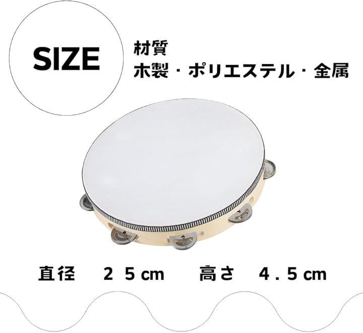 「商品内容」タンバリン 1個、本体サイズ:直径25cm、高さ4.5cm、材質:木材、ポリエステル、金属 対象年齢:6歳以上 *サイズ詳細は商品画像をご確認ください。