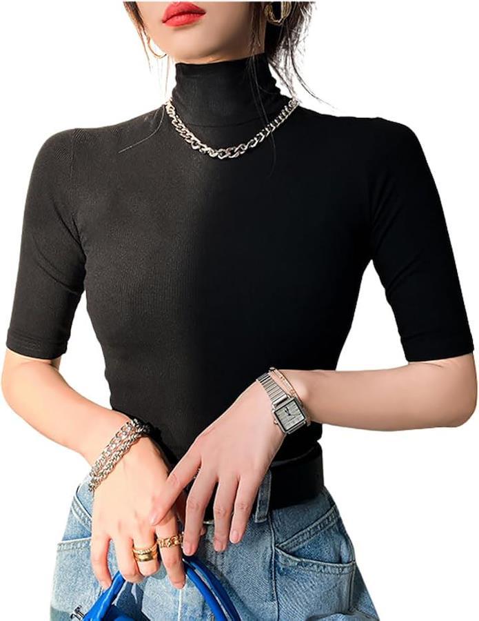 「高級感のある上品タートルネック」このトップスは女性らしいさりげないセクシーさを演出します。