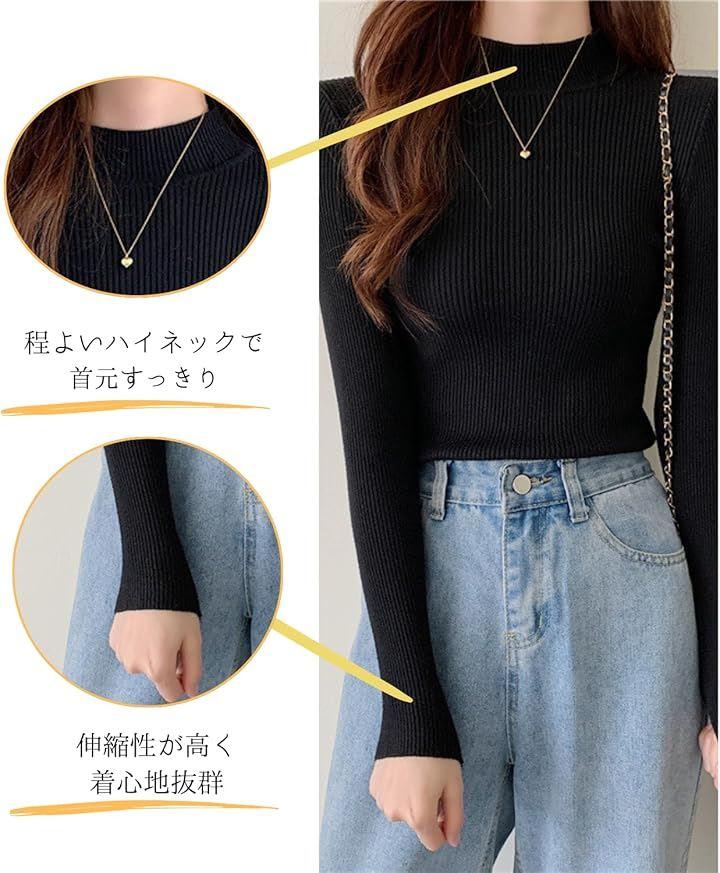 「上品で着回し抜群なタートルネックセーター」シンプルながらも洗練された印象を与える「タートルネック レディース 薄手 着痩せ リブニット」は、どんなスタイルにも馴染むアイテム。