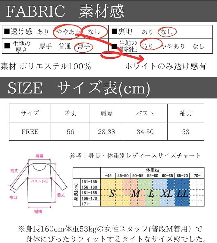 「素材」ポリエステル100% 「カラー」ホワイト、ブラウン、ブラック、カーキ、ベージュ「サイズ(cm)」FREE 着丈56 肩幅28-38 バスト34-50 袖丈53
