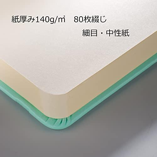 水彩、ペン、パステル、色鉛筆などに使える汎用性の高い細目の中性紙(140g/m2)80枚綴じ。
