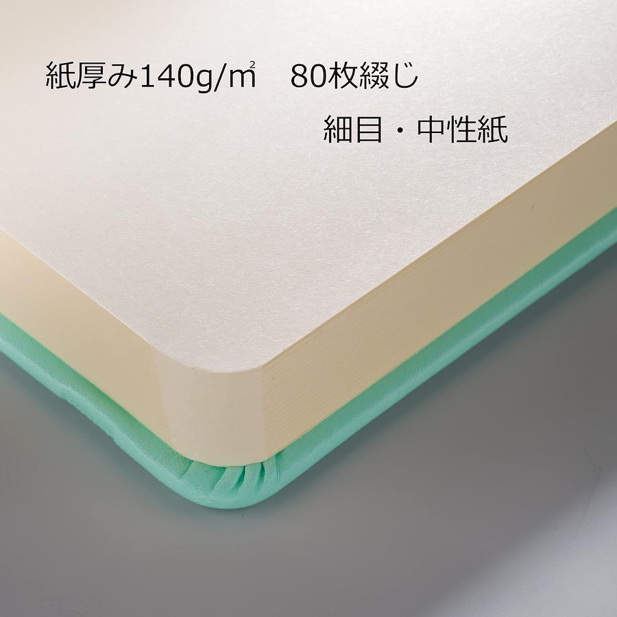 水彩、ペン、パステル、色鉛筆などに使える汎用性の高い細目の中性紙(140g/m2)80枚綴じ。
