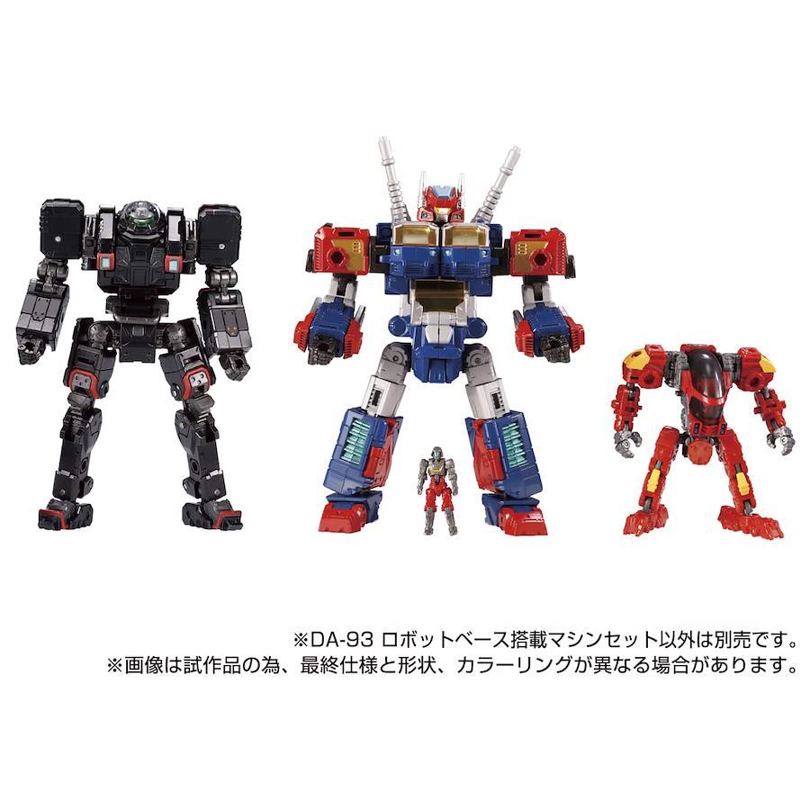 ロボットベース搭載マシンセット登場! 今後、発売予定のロボットベースに搭載可能な3機の合体マシン01・02・03とスペシャルマシン(ビークル)が付属! (合体マシン02・03はボレットコア準拠のジョイントシステムを採用) 3機の合体マシン01・02・03は人型戦闘マシンに合体!人型戦闘マシンでの全高は約12cm。 極小アクションフィギュアが3体付属。 【セット内容】 本体A×1、本体B×1,本体C×1, ビークル×1,武器×2,ダイアクロン隊員Ver.2.0×3, パンフレット×1,取扱説明書×1