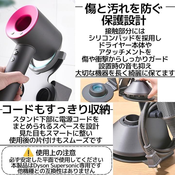 「ドライヤーを美しく収納」 Dyson Supersonic本体とアタッチメントを一括収納できる専用スタンド。