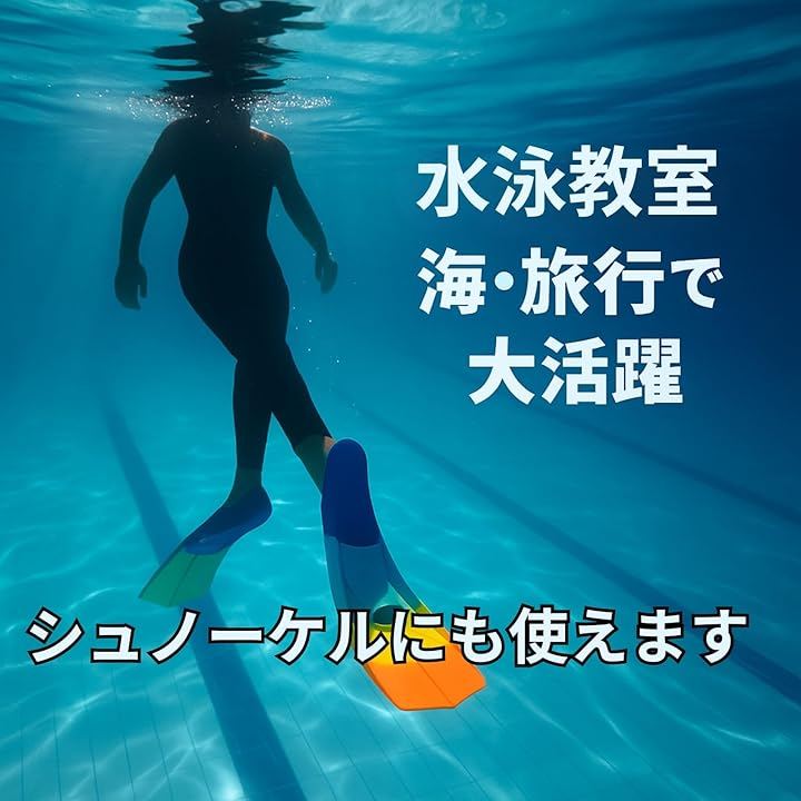 長いフィンにありがちな取り回しの難しさや転倒リスクを抑え、練習や遊びに取り組める仕様です。