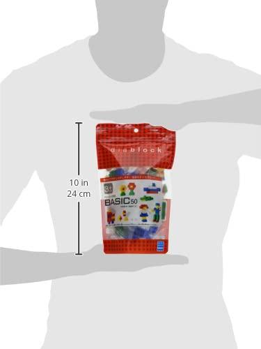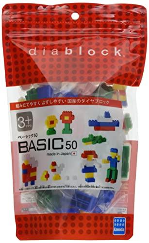 ダイヤブロックの基本パーツが50ピース入った大変お買い求め安いセットです。ブロックの種類は2種、ピースカラーは赤・青・黄・緑・白の5色。ブロック遊びの入門として楽しんでいただける商品です。※説明書は付いておりません。 ジップタイプの容器で収納にも便利。