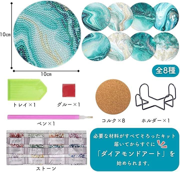 「安心の完全装備DIYキット」 コースター、コルクマット、ホルダー、ダイヤモンドペン、接着剤、トレイ、ストーンなど、制作に必要な全ツールを完備。