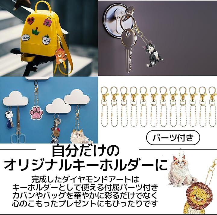 「自分だけのオリジナルキーホルダーに」 完成したダイヤモンドアートはキーホルダーとして使える付属パーツ付き。