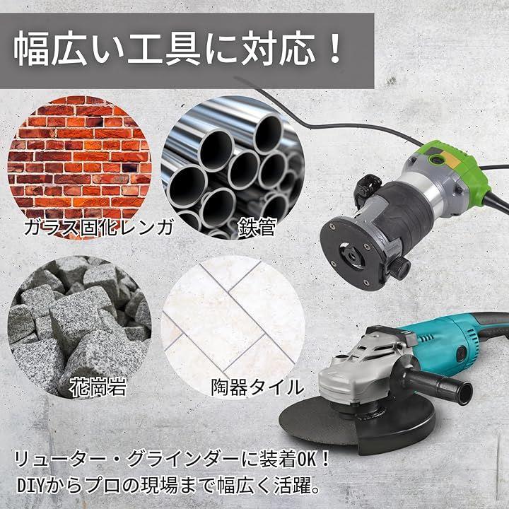 リューターやグラインダーに対応し、DIYからプロの作業まで幅広く活躍します。