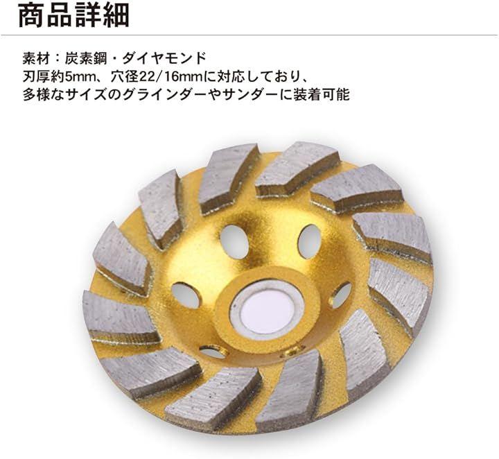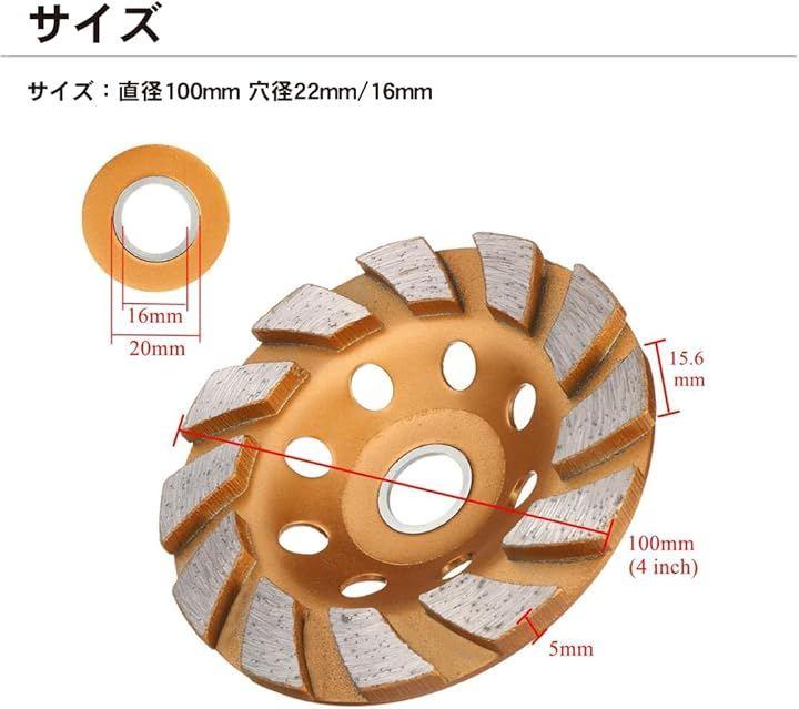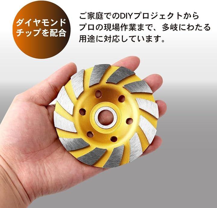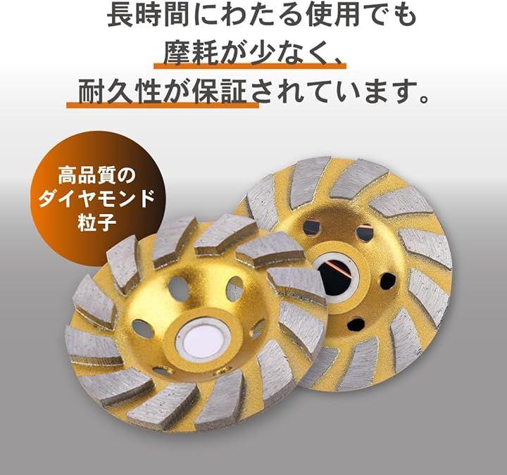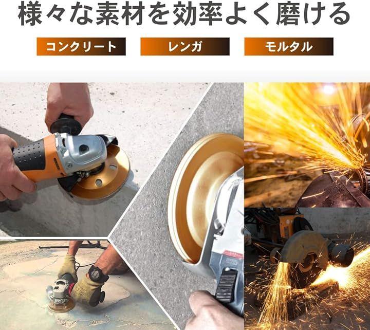 「高品質のダイヤモンド粒子を使用」ダイヤモンドカップサンダーは、コンクリートやモルタル、タイル、レンガ、瓦などの素材を効率よく磨くのに最適です。