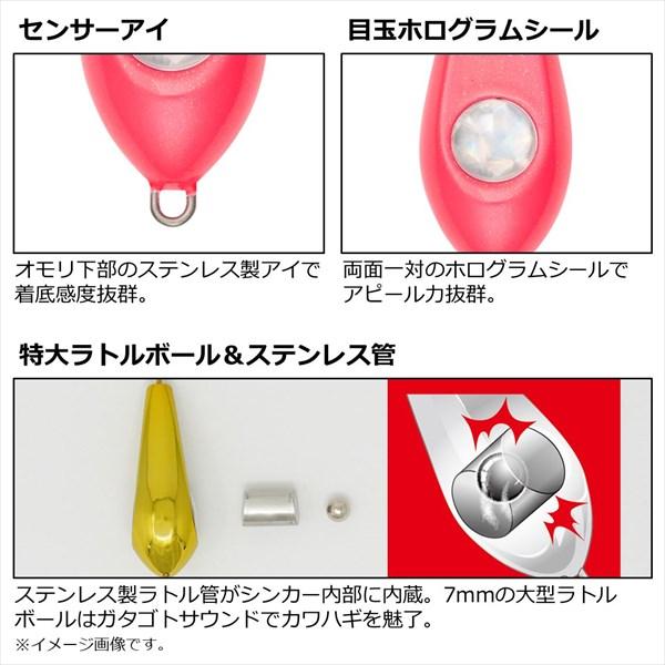 音でアピール!特大ラトルボール入りシンカー。■特大ラトルボール&ステンレス管。音でアピール!ラトル音量大幅UP! ■センサーアイ。オモリ下部のステンレス製アイで着底感度抜群!■目玉ホログラムシール。両面一対のホログラムシールでアピール力抜群! 号数:30号 ※実物と色が違って見える場合があります。あらかじめご了承下さい。