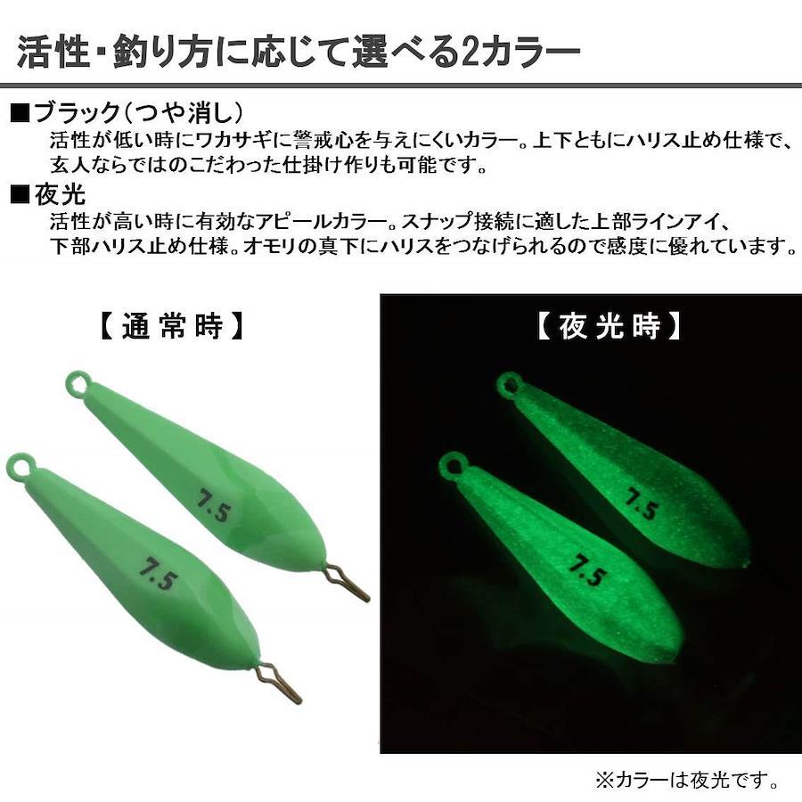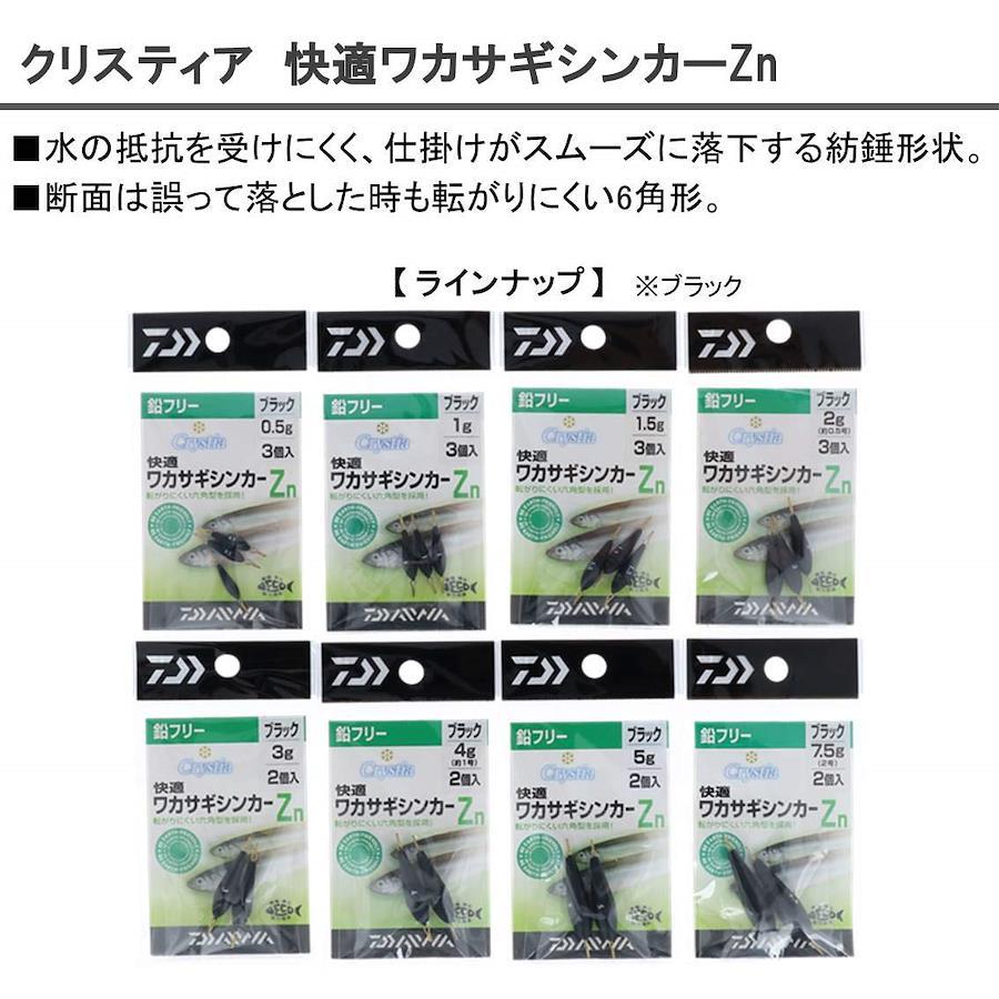 環境にやさしい亜鉛(Zn)製のワカサギ専用シンカー:水の抵抗を受けにくく、仕掛けがスムーズに落下する紡錘形状。断面は誤って落とした時も転がりにくい6角形。
