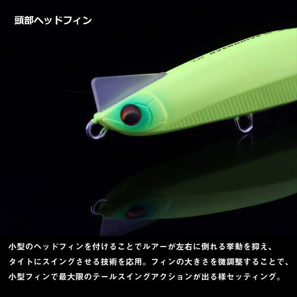 ヒラメ&マゴチからシーバス、青物まで幅広く狙える、超ぶっ飛びのバーサタイルヘビーシンキングペンシル!スローリトリーブではヒラメ&マゴチ、シーバスに有効なワイドテールスイングアクション、高速リトリーブでは青物に有効なイレギュラーローリングアクションにシフトチェンジ!圧倒的な飛距離を実現! サイズ:95mm 標準自重:35g 有効レンジ:0.5~∞ タイプ:ヘビーシンキング テスト飛距離:MAX107m、Ave104.3m 標準装備フック:♯4トレブル 標準装備リング:♯4 アクション:ワイドテールスイング&イレギュラーロール ※実物と色が違って見える場合があります。あらかじめご了承下さい。