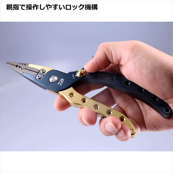 小型スプリットリング対応、ワンタッチロック機能付き軽量アルミプライヤー ■小型スプリットリング対応(#2-#7) ■アルミプライヤーで軽量化を実現(約:135g) ■収納時便利なワンタッチロック機構。 ■安全安心なセーフティガード付き。 ■PEライン対応ラインカッター。 ■フッ素塗装で錆びにくく汚れも落ちやすい。 ■ラインカッター・ワンタッチロック・先端ステンレスはSLPでアフター対応可能。 適合リングサイズ:♯2~♯7 標準自重:約190g 全長:200mm ※実物と色が違って見える場合があります。あらかじめご了承下さい。