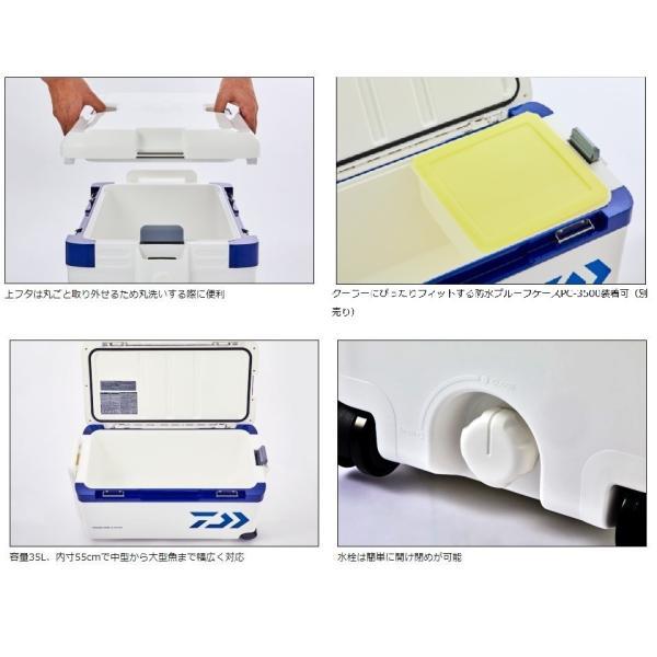 座れる頑丈マッスルボディ。開閉便利なPVトランク。座れる頑丈マッスルボディ 開閉便利なリフトアップオープンシステム 容量35L、内寸55cmで中型から大型魚まで幅広く対応 サイドハンドルと静音キャスター付きで持ち運び楽々 運搬時に上フタをしっかり固定できるサイドロック 90度回すだけで簡単に開閉可能な水栓付き ふんばるマン付きで抜群の安定感 クーラーにぴったりフィットする防水プルーフケースPC-3500対応(S3500には付属しません) 500mlペットボトル縦置き可能(目安28本)断熱材:スチロール容量:35L自重:6.2kg内寸(cm):24×55×25外寸(cm):32.5×71.5×35