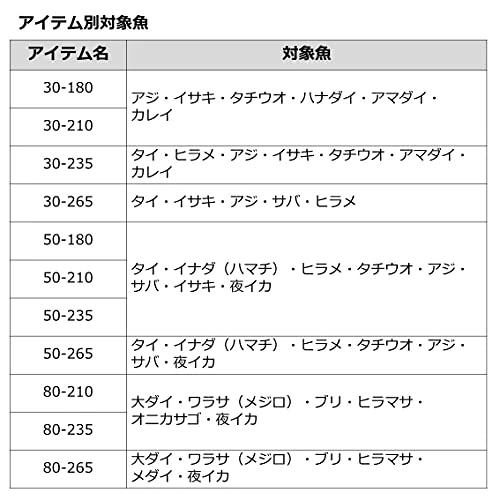 80-265大ダイ ワラサ メジロ ブリ ヒラマサ メダイ 夜イカ感度と操作性に優れた汎用性の高い7:3先調子。穂先には、高感度グラスソリッドを採用し、アタリを取りやすくしなやかに違和感なく食わせる調子を追求。軽量なブランクスと「X45」構造により操作性が良く、思い通りの誘いと合わせが可能な調子を実現した。V-ジョイントの採用により魚が掛かると、スムーズに元竿まで曲がって粘り、大物とのやり取りできるパワーを備え、多くの対象魚や釣り方に幅広く対応しゲーム性の高い釣りを可能にする。