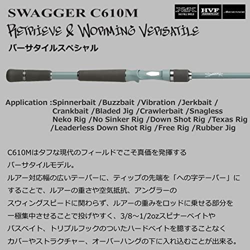 C610M バーサタイルスペシャル C610Mはタフな現代のフィールドでこそ真価を発揮するバーサタイルモデル。 ルアー対応幅の広いテーパーに、ティップの先端を「への字テーパー」にすることで、ルアーの重さや空気抵抗、アングラーのスウィングスピードに関わらず、ルアーの重みをロッドに乗せる部分を一極集中させることで投げやすく、3/8 1/2ozスピナーベイトやバスベイト、トリプルフックのついたハードベイトを臆することなくカバーやストラクチャー、オーバーハングの下に入れ込むことが出来る。